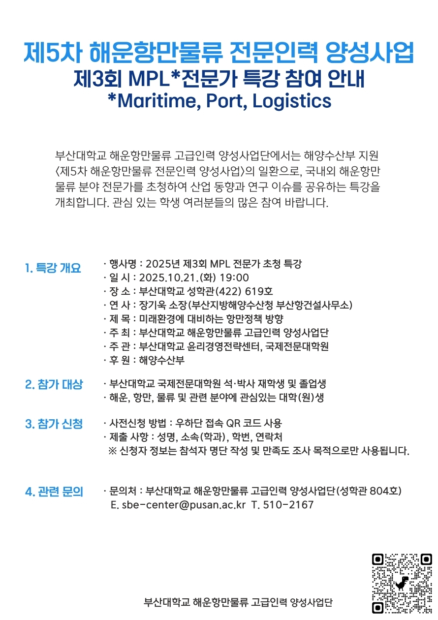 [PMPL] 3rd Maritime, Port, Logistics Special Lecture (10.21.) MPL 전문가 특강 참여 안내