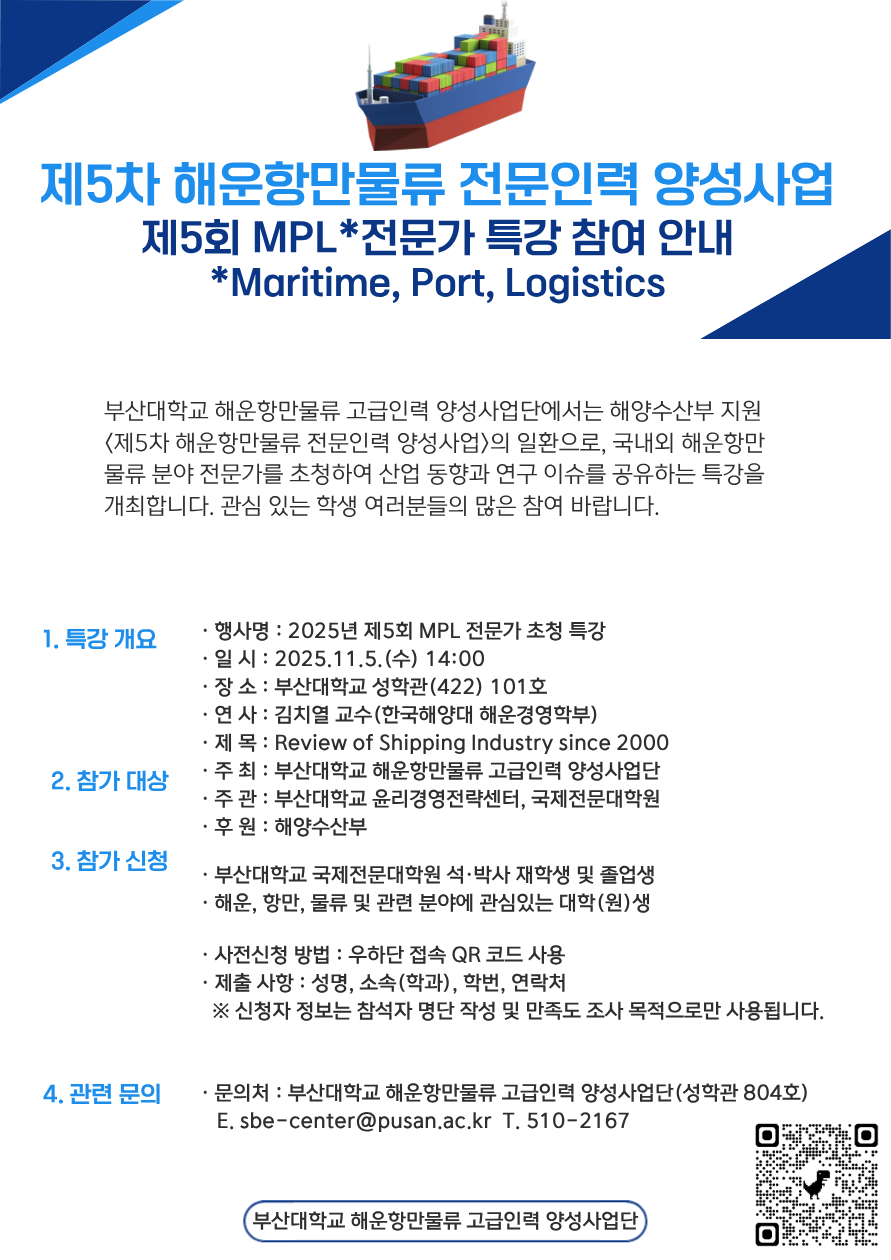 ○ Event Title: 2025 5th MPL (Maritime-Port-Logistics) Expert Lecture