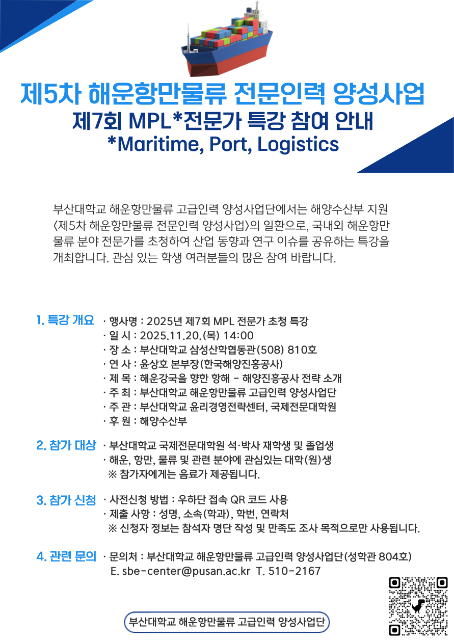 [PMPL] 7th Maritime, Port, Logistics Special Lecture (11.20.) MPL 전문가 특강 참여 안내